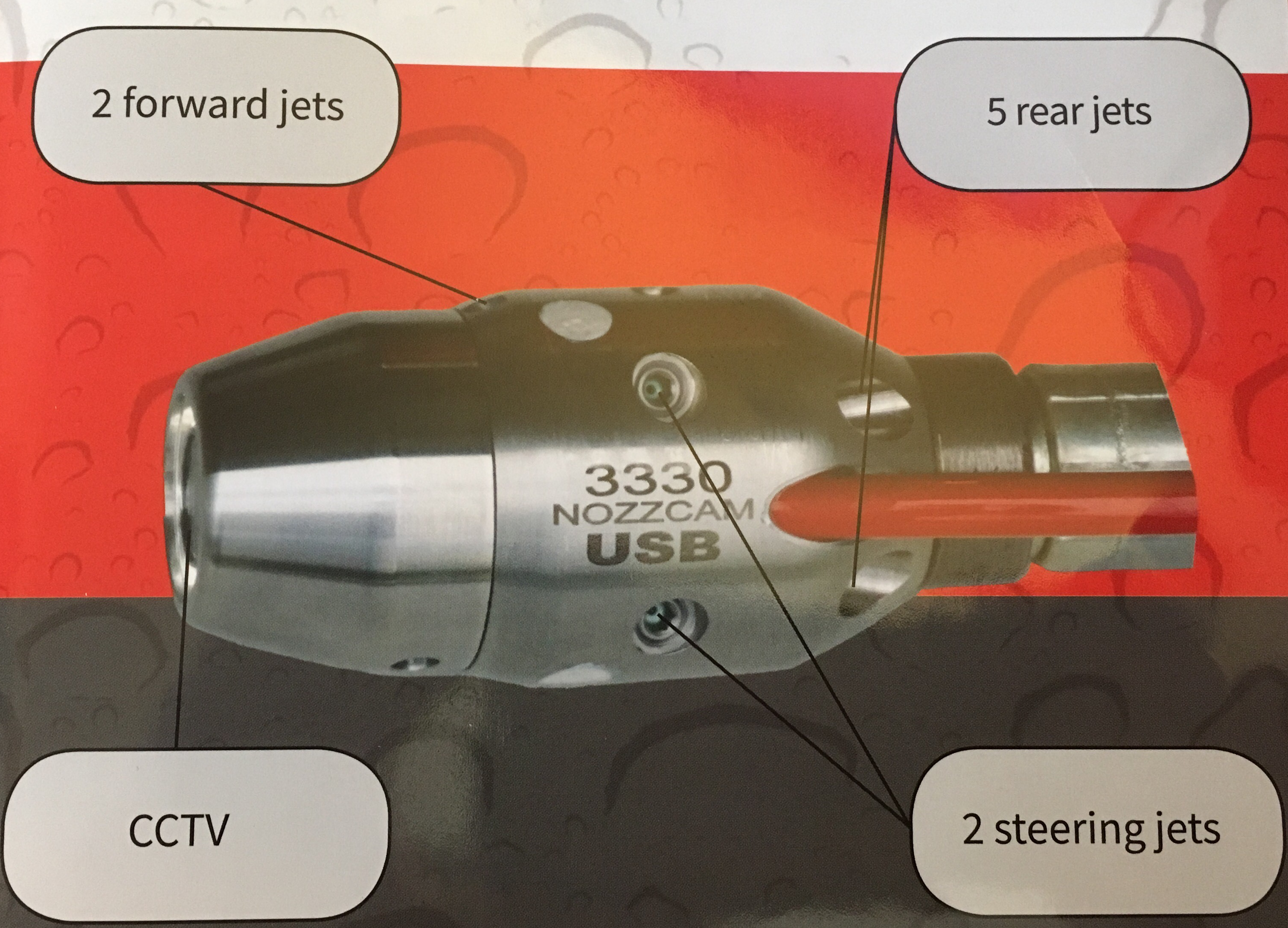 -Excellent pulling and cleaning power in pipes due to 5 powerful rear jets